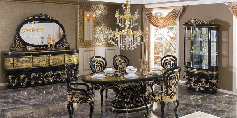 Klasik Yemek Odası, salonunuzun ambiyansını, yemeklerinizin havasını değiştirecek olan bu ürün klasik mobilyanın adresi Hanzade Avangarda.