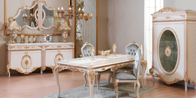 Klasik Yemek Odası, salonunuzun ambiyansını, yemeklerinizin havasını değiştirecek olan bu ürün klasik mobilyanın adresi Hanzade Avangarda.